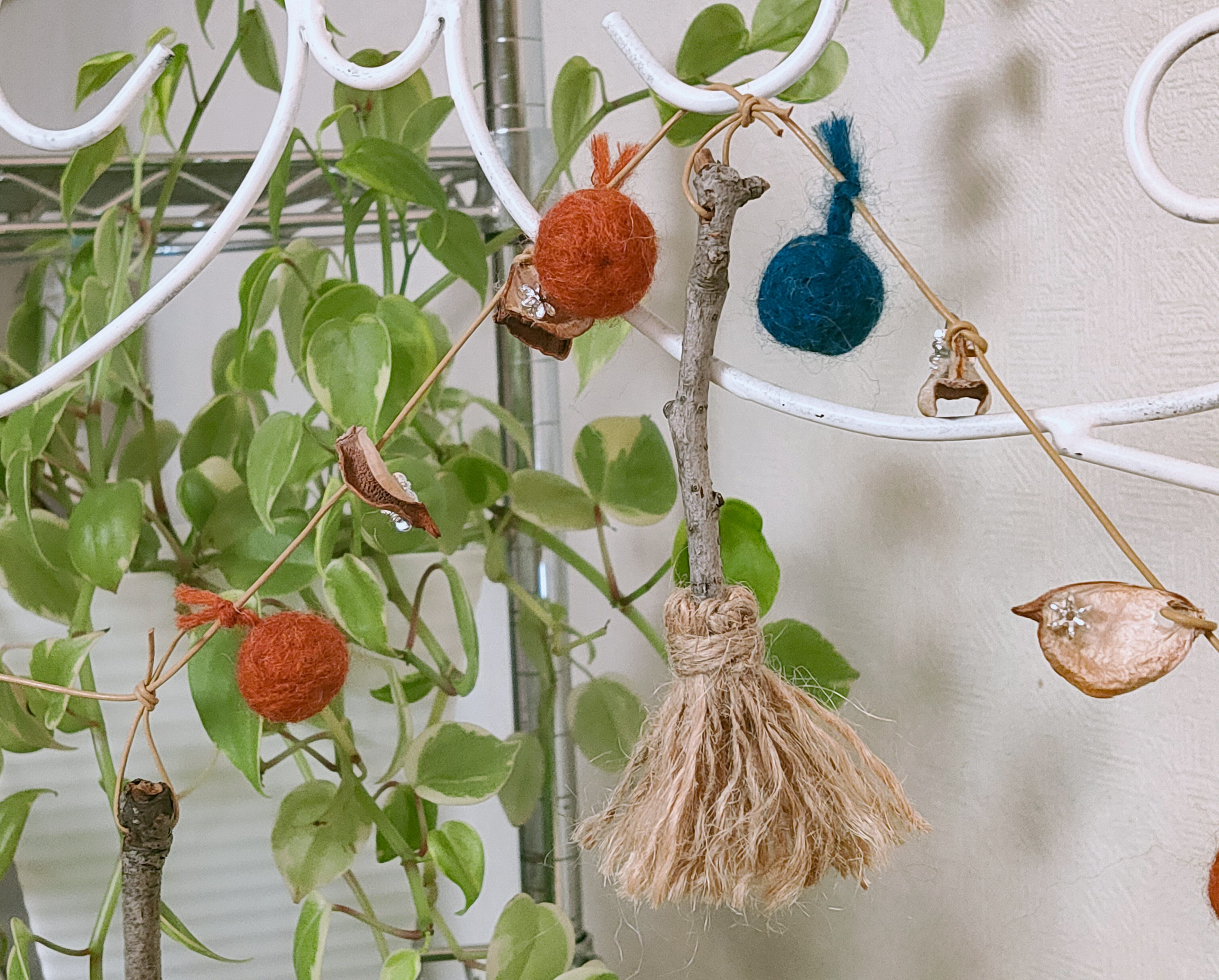 ❤綿殻&小枝ホウキの❤革紐★ガーランド